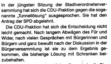 NICHT irgendwelche Bürger, die sich gegen eine Unterführung ausgesprochen haben, konnten eine Unterführung verhindern. Das konnten nur die damaligen Stadtverordneten.