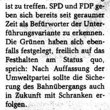 Das Abstimmergebnis mit Namen zu – für oder gegen eine Bahnunterführung – dürfte sich in einem gut gepflegen Archive einer Fraktion doch zur Veröffentlichung sicherlich finden lassen.