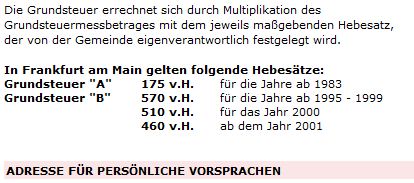 Die Grundsteuer B wird in Frankfurt auch im Jahr 2012 bei 460 % bleiben.