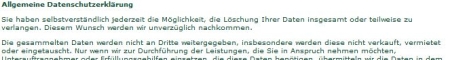 Ich verlange jetzt ganz einfach einmal die Datenlöschung. Da ich mich ja NUR mit meiner eMailadresse angemeldet habe und mein Fragebogen anonym ist, können meine Daten niemals teilweise gelöscht werden, sondern nur insgesamt. Es gibt ja nur eine einzige Angabe. Meine eMailadresse.