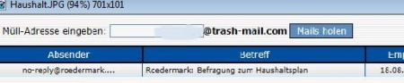 An die Arbeit. Fragebogen mit *****@trash-mail.com und mit *****@trash-mail.com angefordert. Und das funktioniert.