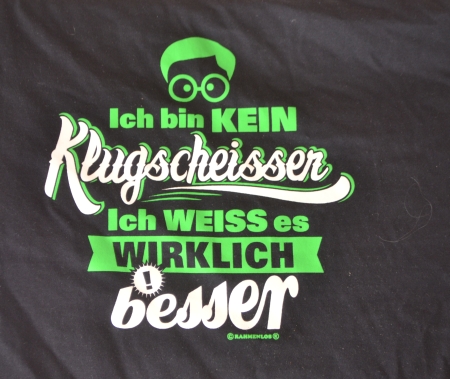 Wenn ich das T-Shirt mit diesem Aufdruck demjenigen schenke, der es aus völliger Überzeugung und Stolz tragen würde, bekäme ich mächtig Ärger.