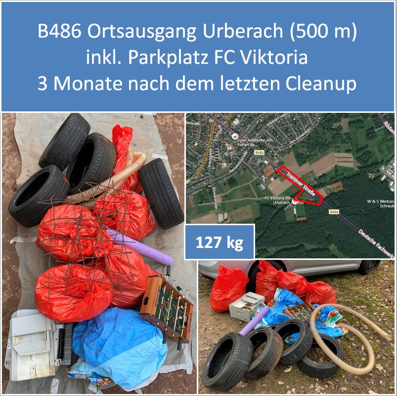 Der Müll wurde von von Frank Schemm, auch reglem. Teilnehmer bei den Sammelaktionen der Umweltfreunde Rödermark, eingesammelt.