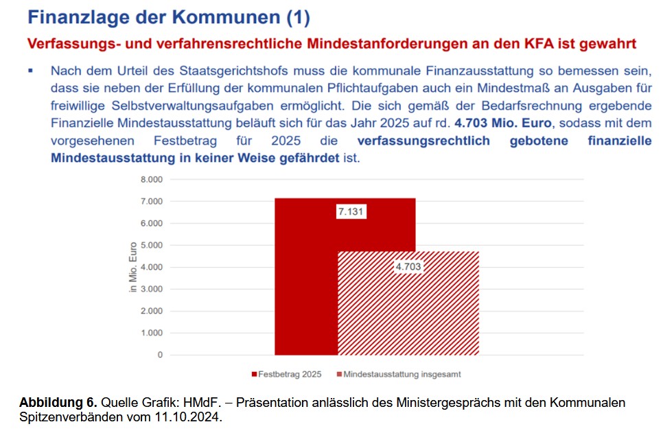 Der Kommunale Finanzausgleich (KFA) steigt erneut: Mit 7,4 Milliarden Euro wird er 2026 ein neues Rekordniveau erreichen. Aufbauend auf der gemeinsamen Evaluierung des KFA mit den Kommunalen Spitzenverbänden legt das Land damit den Grundstein für stabile Kommunalfinanzen in herausfordernden Zeiten. Finanzminister Lorz hat die individuellen Planungsdaten für die Kommunen heute veröffentlicht.