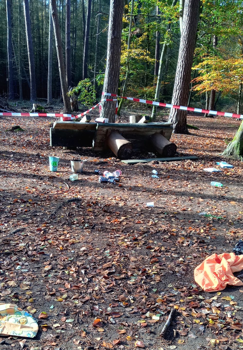 Wir haben nicht vor, das, was aktuell am Bernsche herumliegt, zu entsorgen. Das Umfeld haben wir durch ein Flatterband abgegrenzt und ironisch als
