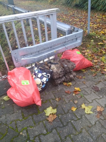 Ganz zufällig bin ich dort mit unserem Hund spazieren gegangen, die mir für die o.g. Feuerstelle genannt wurde. Ganz zufällig hatte ich auch einen Müllbeutel, Müllgreifer sowie ein Smartphone für die obenstehende Aufnahme dabei.