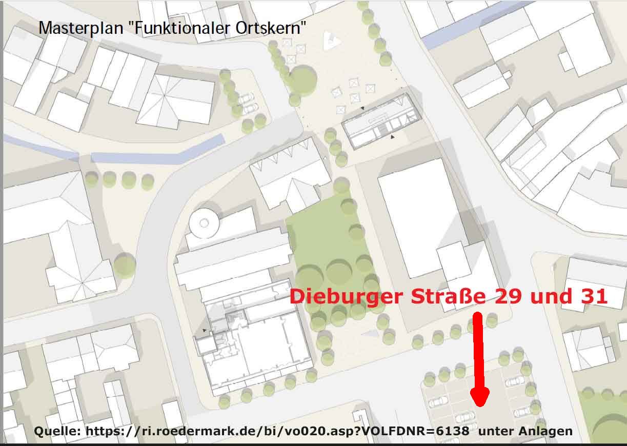 Es gibt einen Antrag der Verwaltung „Machbarkeitsstudie funktionaler Ortskern“ mit einem Grundsatzbeschluss. Kein Auftrag, die Maßnahme auch auszuführen. Quelle