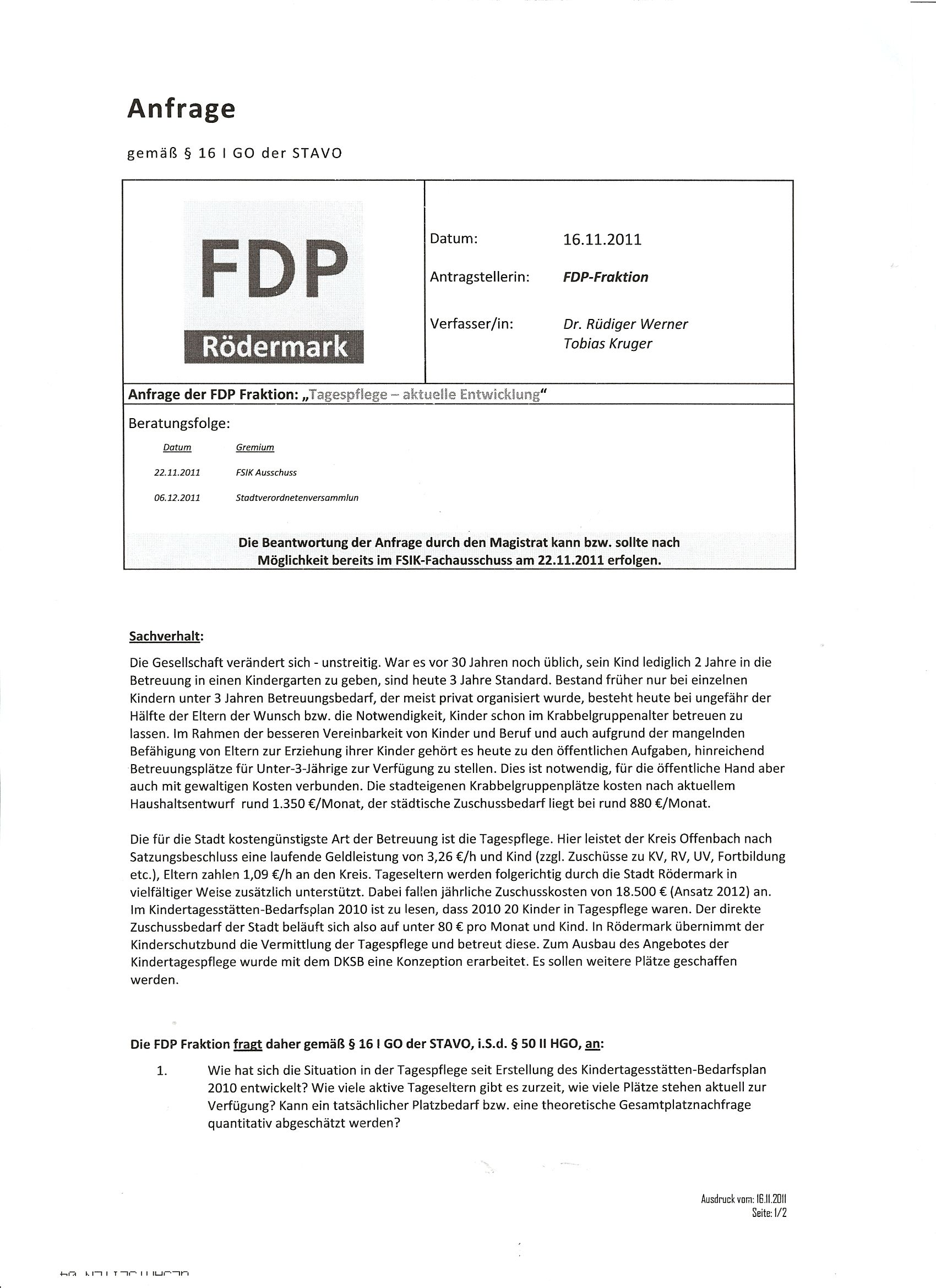 FDP-Rödermark mit einem Antrag am 15.11.2011
