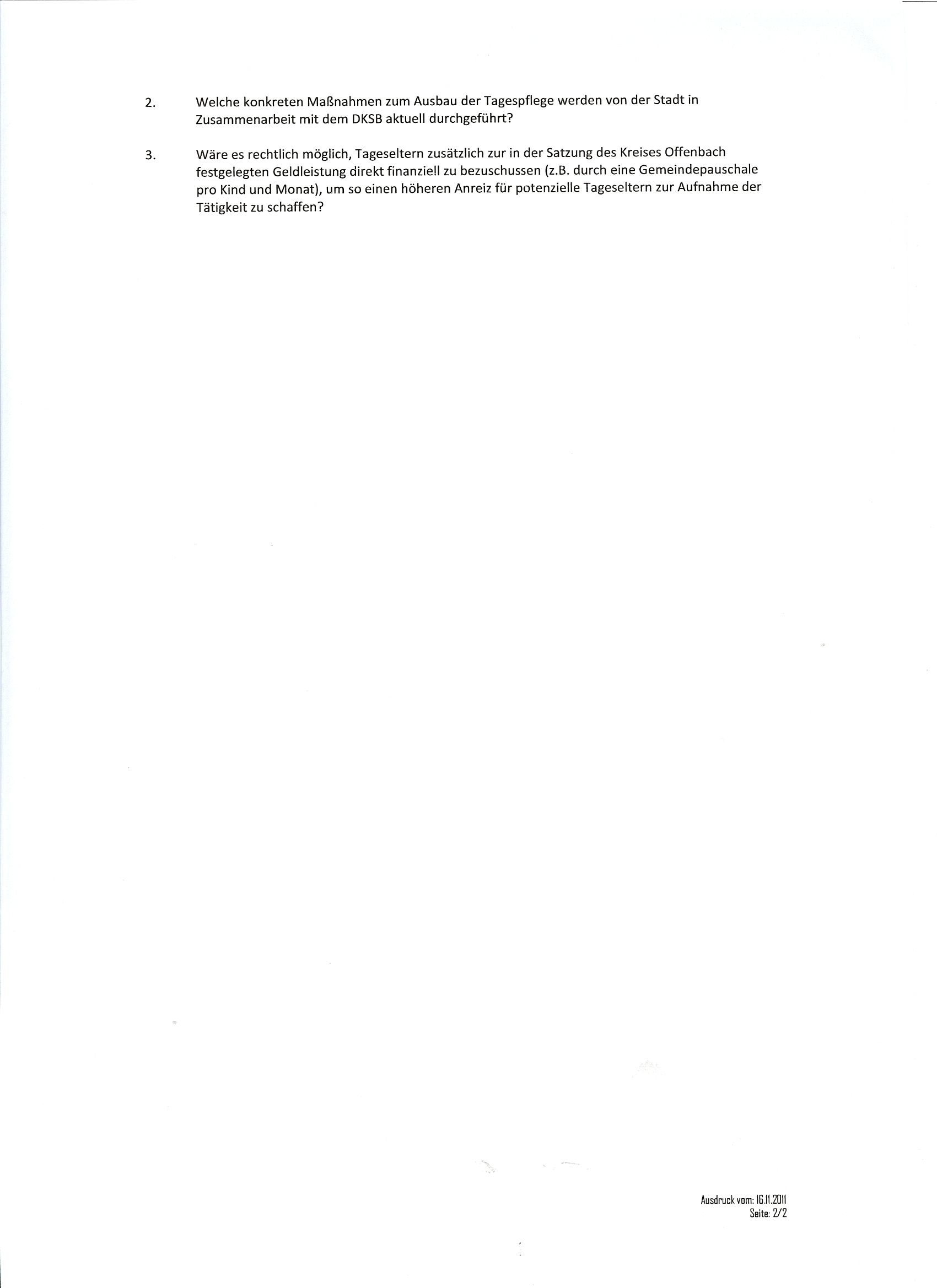 [..]Der Ausbau der Tagespflege ist die für die Stadt eine qualitativ hochwertige und zugleich kostengünstigste Möglichkeit, zusätzliche U3?Betreuungsplätze zu schaffen. Jede Möglichkeit der Förderung der Tagespflege ist daherzu nutzen und auszubauen. Ummögliche zusätzliche Fördermöglichkeiten in Anspruch nehmen bzw. bieten zu können, soll das Budget für Zuschüsse für Tageselterneinrichtungen erhöht werden.[..]