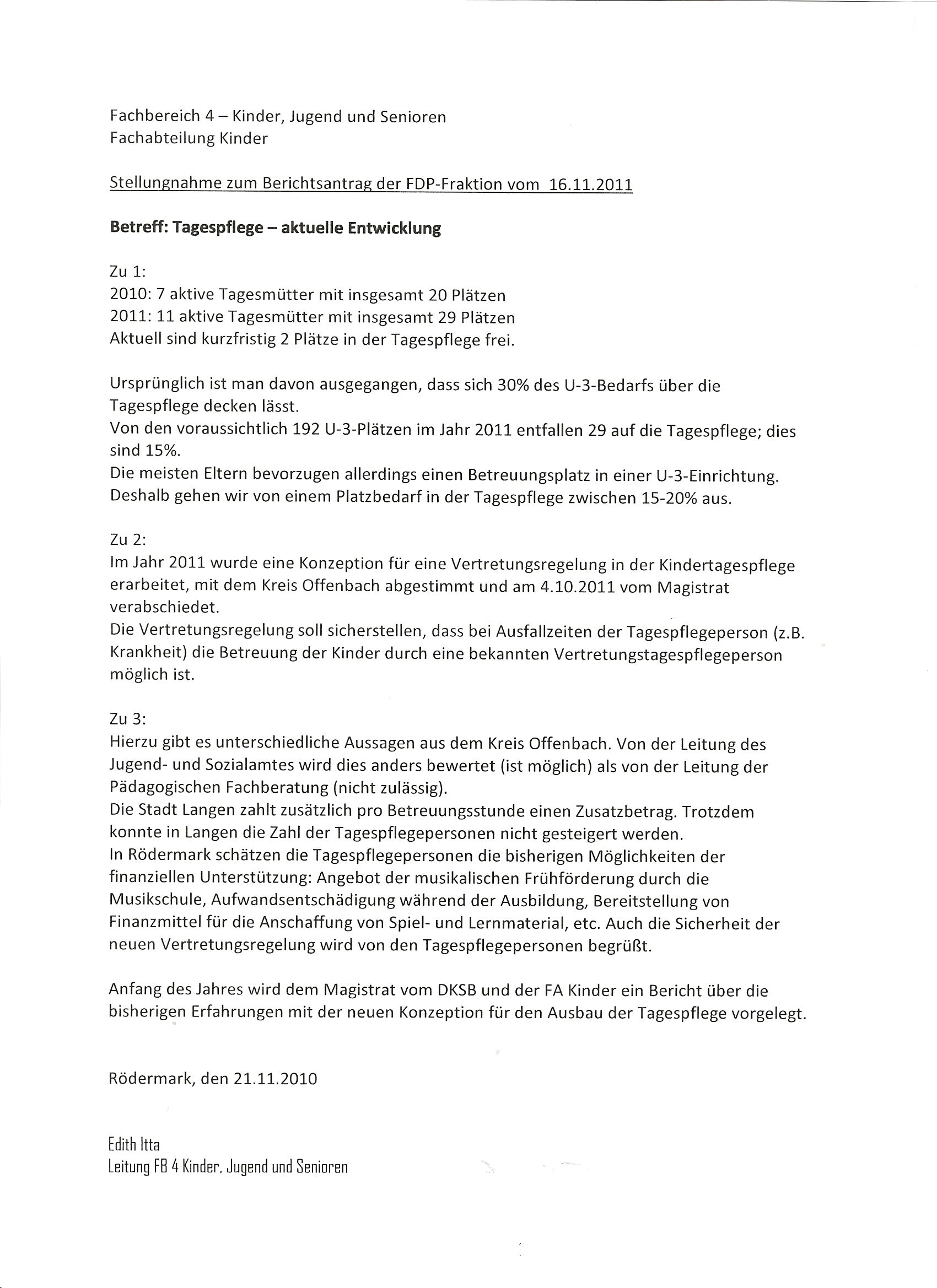 Anfrage der FDP-Rödermark – Tagespflege – aktuelle Entwicklung.