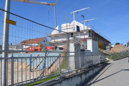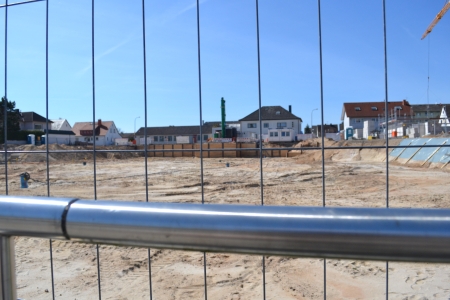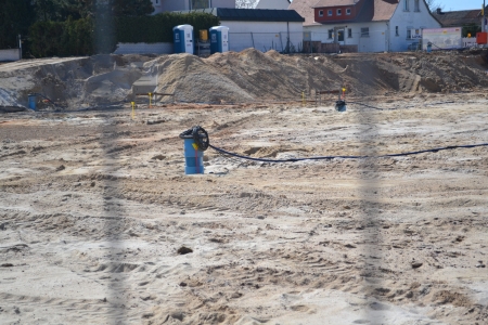 Das blaue Ding das Sie da sehen ist keine Kaffeemaschine. Ich nehme an, dass ist eine der vielen Pumpen die den Grundwasserspiegel absenken. Sie dazu den Artikel: Odenwaldstraße. Setzrisse durch Grundwasserabsenkung möglich?
