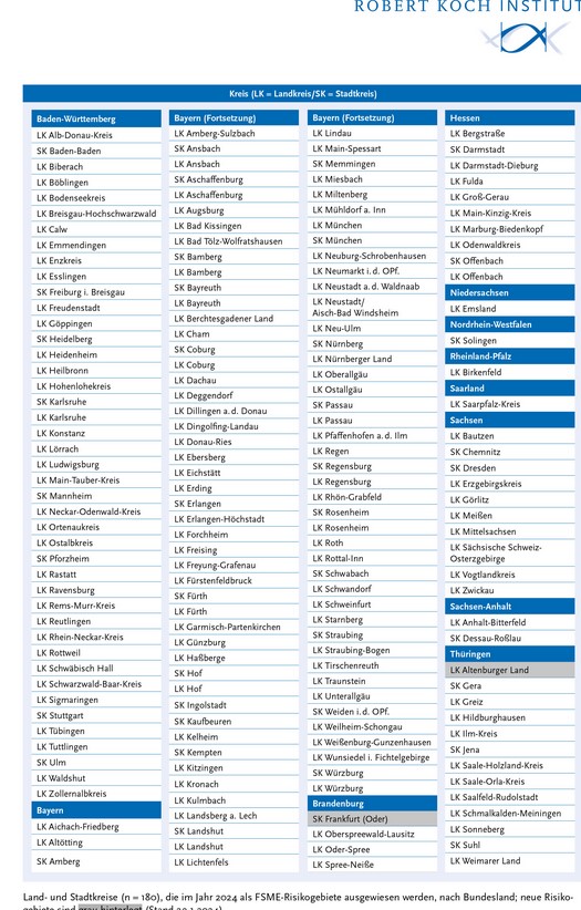 Zu Risikogebieten in Hessen zählen aktuell die Städte Offenbach und Darmstadt sowie die Kreise Bergstraße, Darmstadt-Dieburg, Fulda, Groß-Gerau, Main-Kinzig, Marburg-Biedenkopf, Odenwald und der Kreis Offenbach. FSME kann aber auch außerhalb der erklärten Risikogebiete vorkommen. Quelle: Hessenschau.de