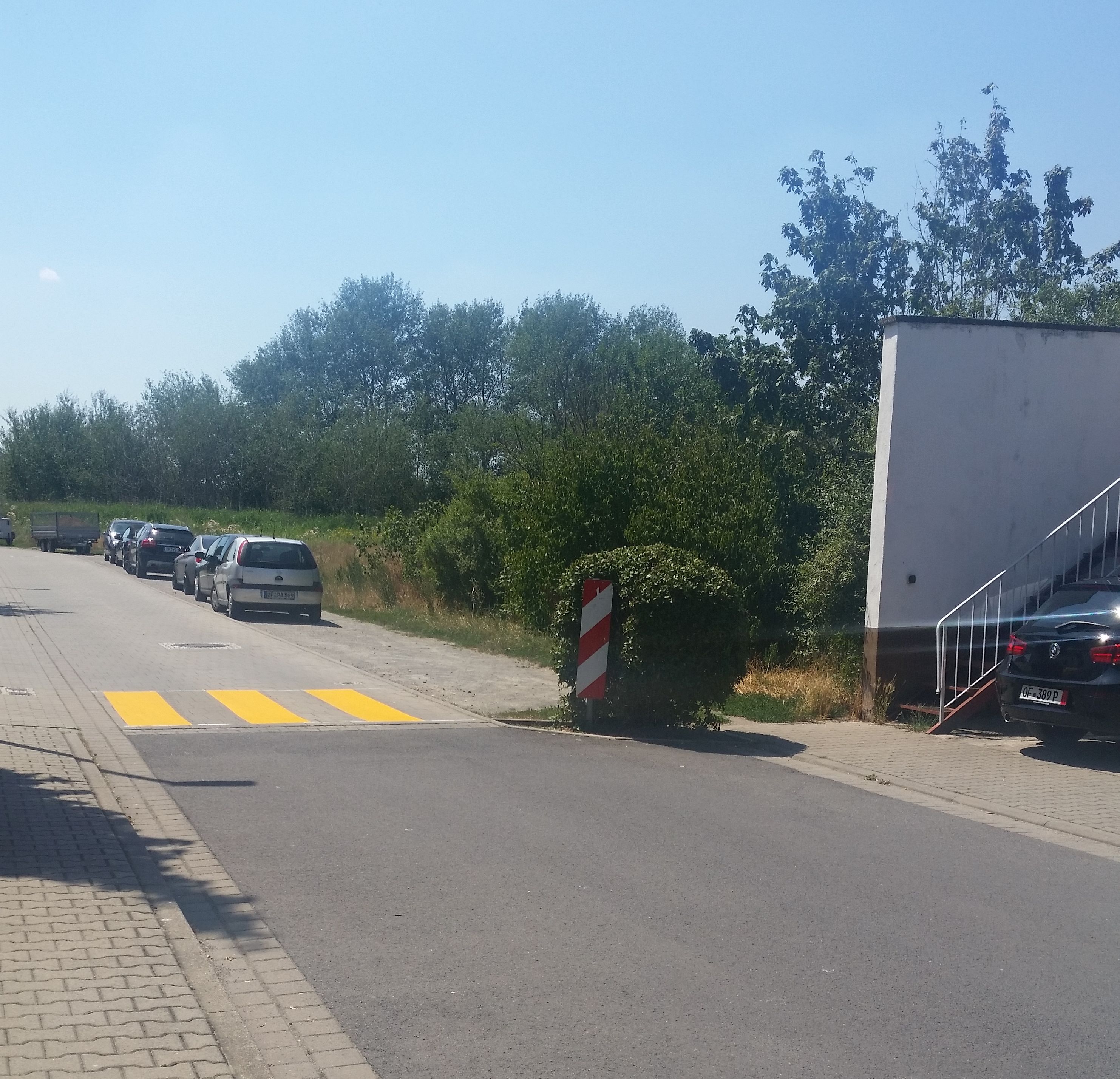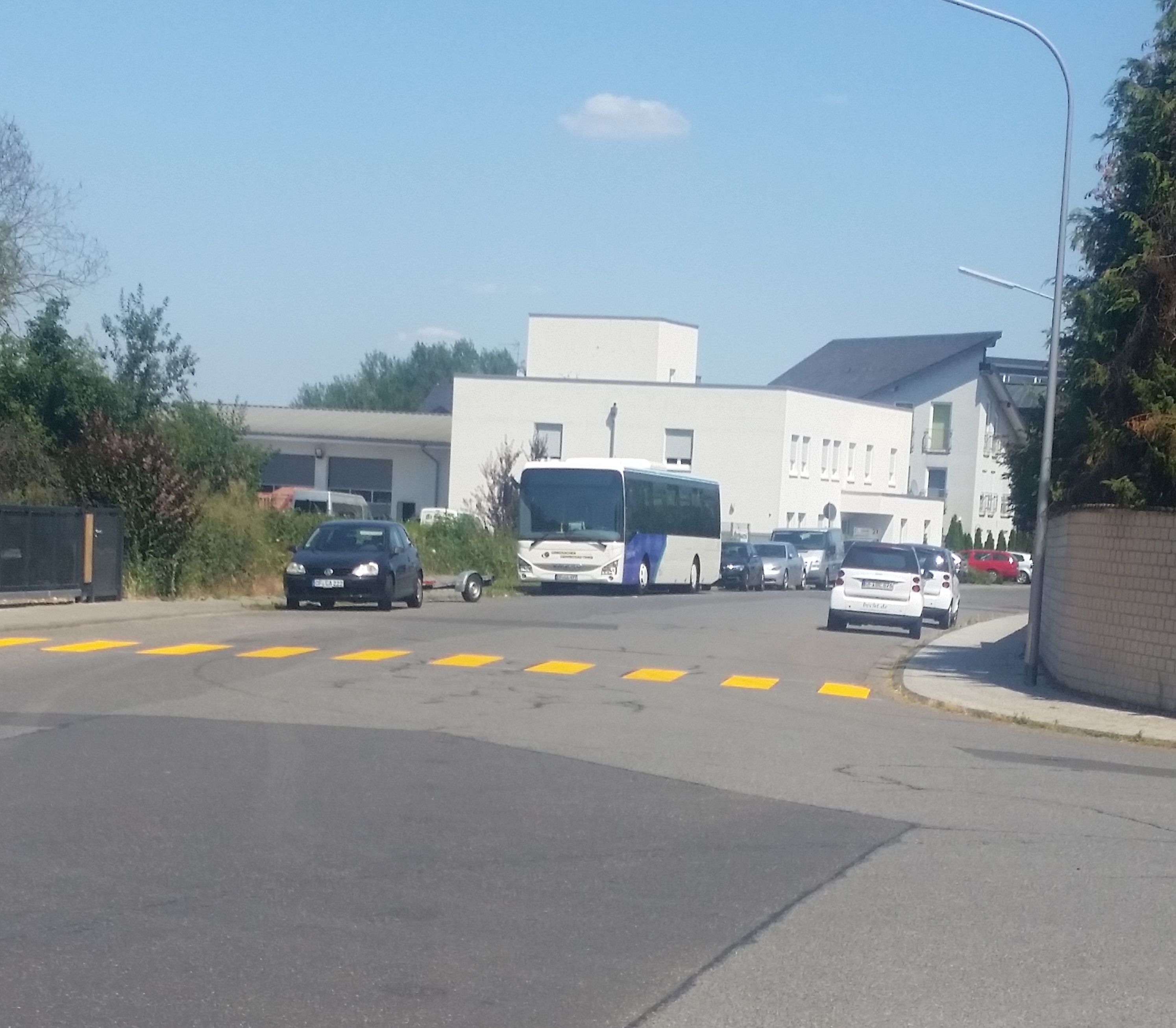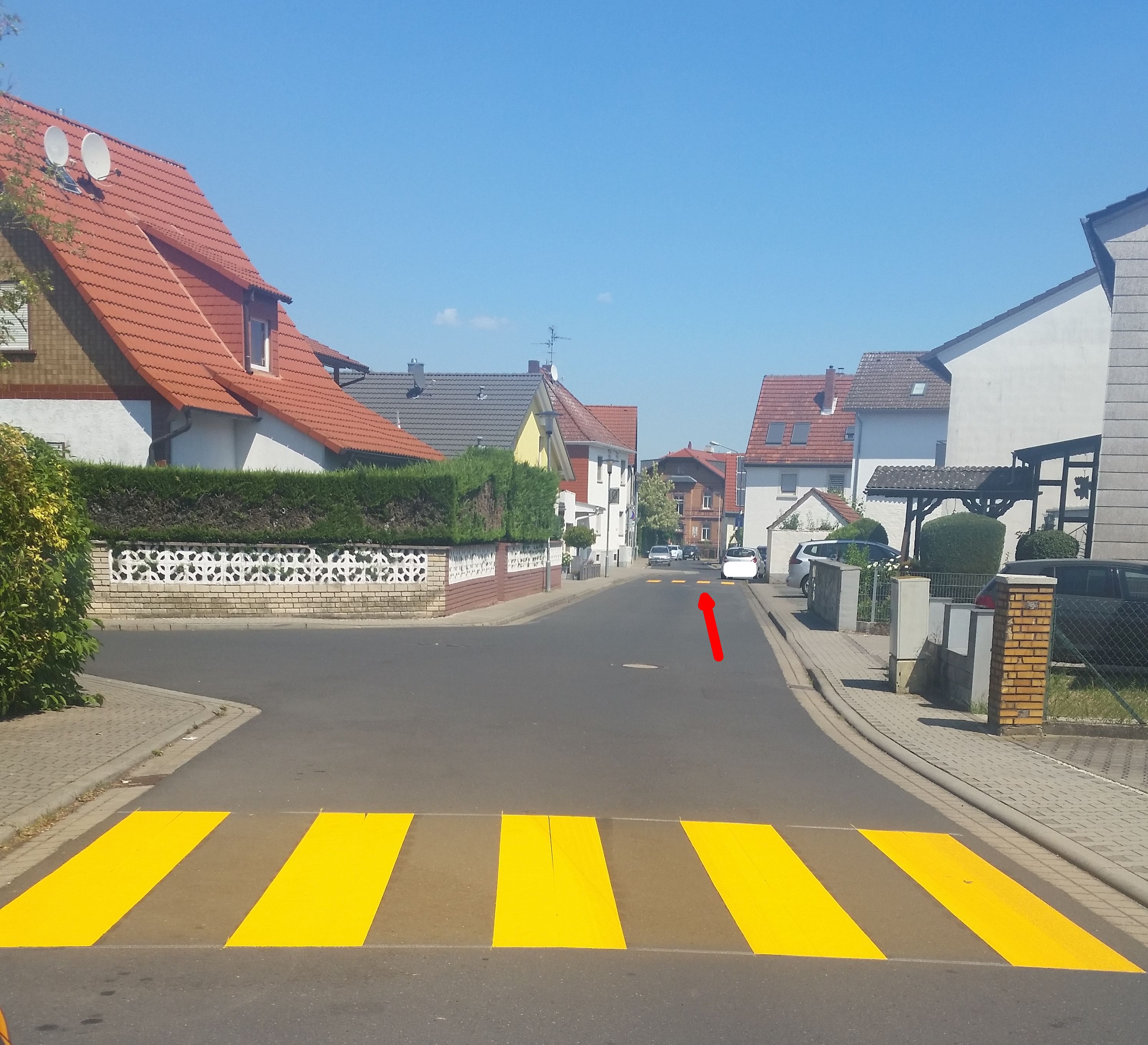 gesamten Industriegebiet Zebrastreifen für Fußgänger markiert, die aber erst Gültigkeit haben wenn die