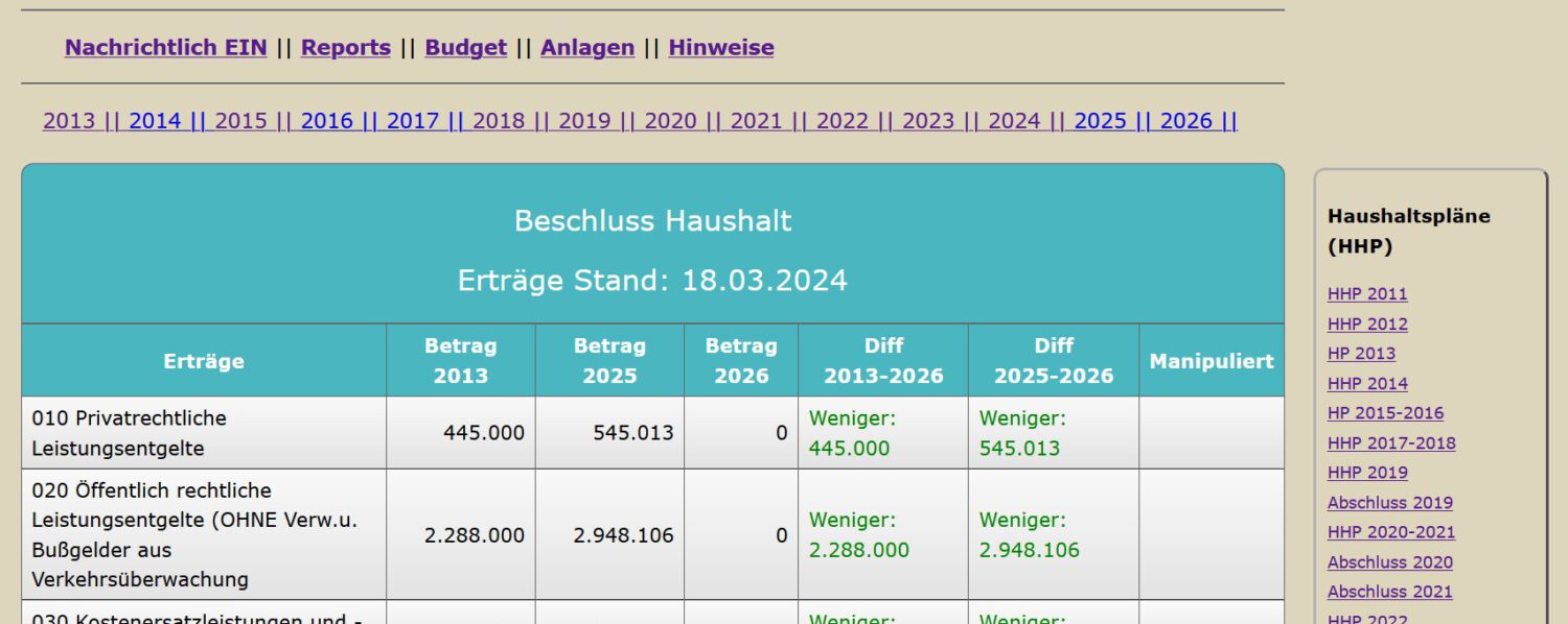 Der Magistrat legt den Entwurf des Haushaltsplanes 2026 zur Beratung vor.
