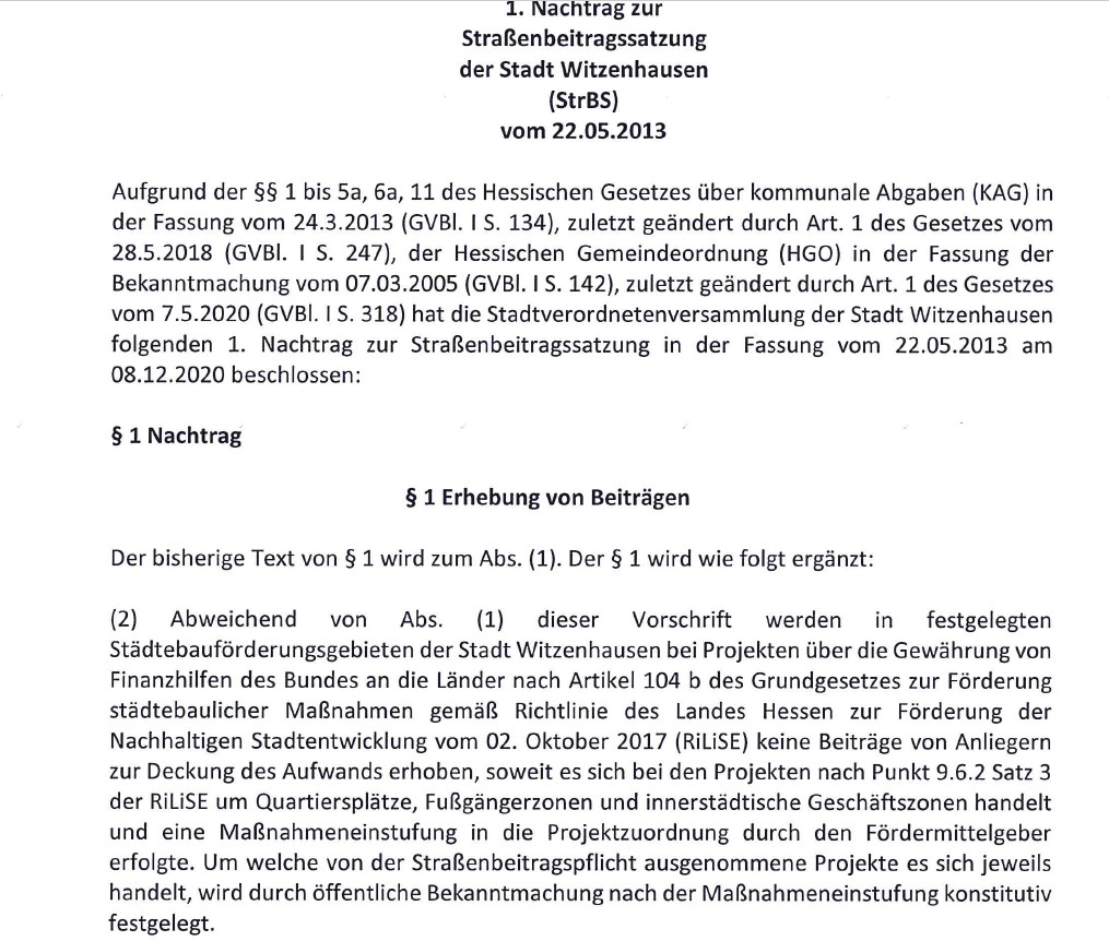Wenn in einer Stadt eine Straßenbeitragsstzung vorhanden ist, könnte man die im Sinne von ANBest-GK (Step 4) anpassen.