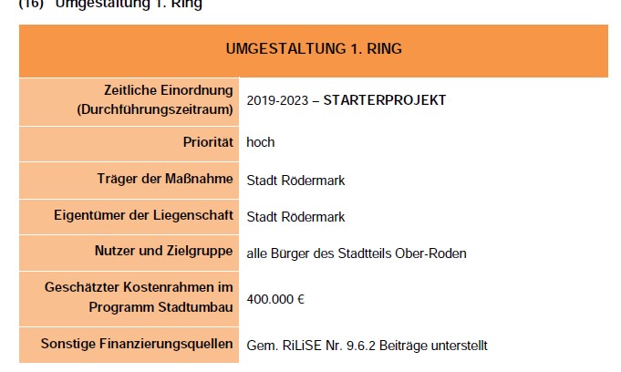 Förderprogramm Straßenbau Innerer Ring. Förderquote ca. 30 %