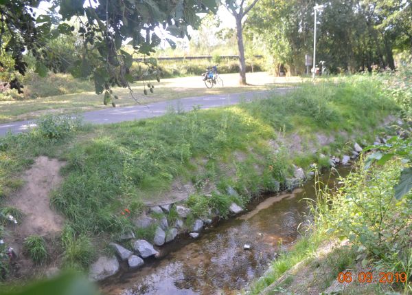 » 13.06.2019 Gegenüber der Weidenkirche. Da war mal eine Brücke.