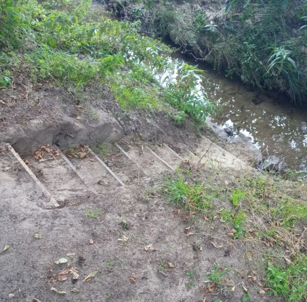 - Weidenkirche-Treppe (Rodaulehrpfad, Übertriebene Reglementierungen am Beispiel der abgerissenen Brücke sowie der neuen Treppe zur Rodau)