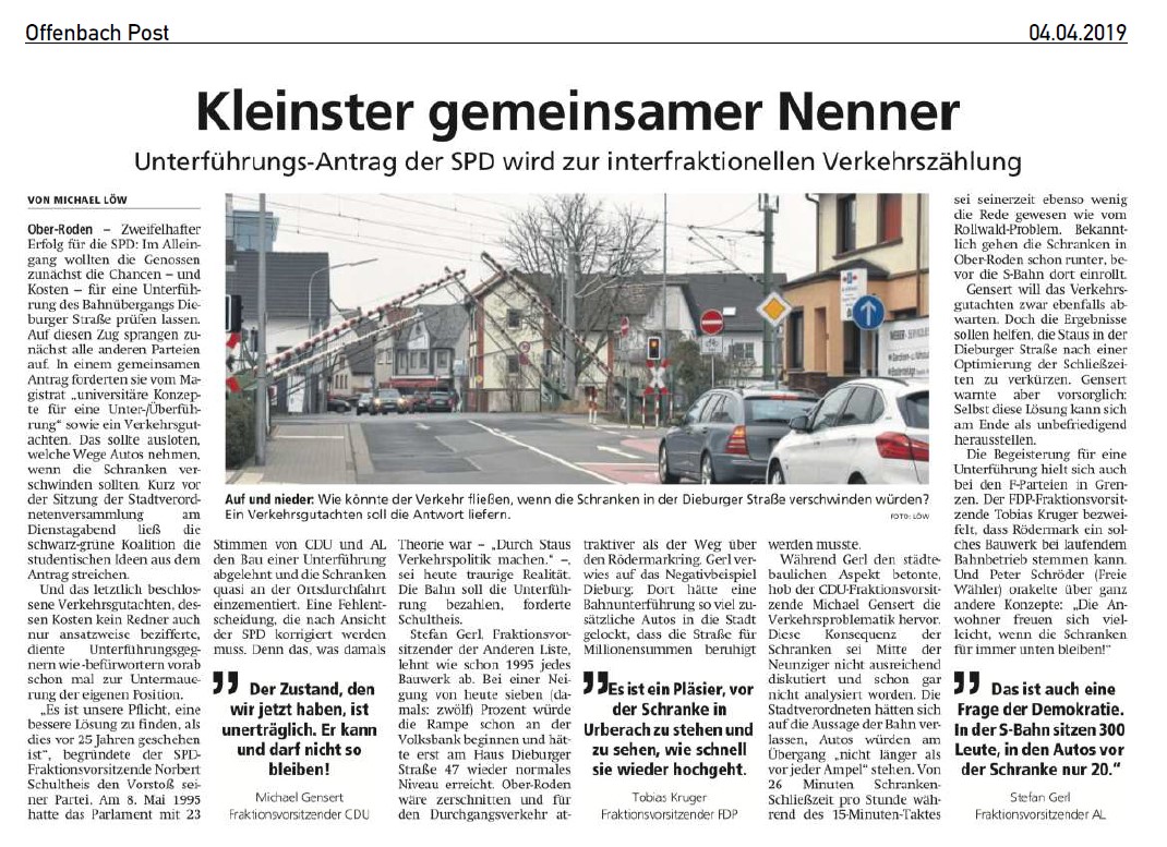 08.11.2019In der Offenbach Post (Printausgabe) Bundes-Millionen für Bahnunterführung Dieburger Straße?