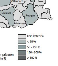 Es gibt eine „Potenzialanalyse erneuerbare Energien“, erstellt von der FH-Frankfurt für die 75 Mitgliedsgemeinden des Pilotgebiets des Regionalverbandes Frankfurt Rhein-Main.