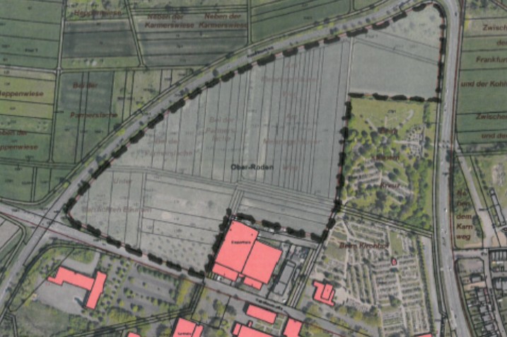 „Der Magistrat wird beauftragt, die Voraussetzungen zu schaffen, um den gesamten Bereich „Kapellenstraße-Rödermarkring-Friedhof“ als Gewerbegebiet auszuweisen. Ausgenommen hiervon wird der Bereich des beschlossenen Mischgebietes.