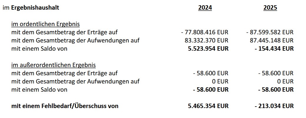 Im Ergebnishaushalt (Entwurf) fehlen 13.751.305,00 Euro.