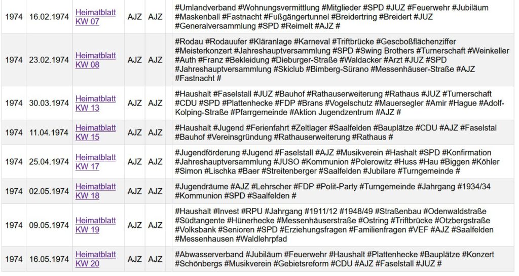 Wie aktiv diese Jugendbewegung war, dokumentiert alleine die Berichterstattung im Ober-Rodener Anzeigeblatt in der Zeit von Januar bis Mai 1974.