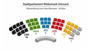 Denkbare Sitzordnung bei der Stadtverordnetenversammlung (Zahlenn noch nicht aus dem amtlichen Endergebnis)
