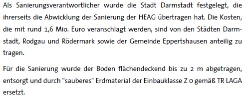 Die Sanierungsarbeiten für die beiden alten Gaswerke will die HEAG ausschreiben. „Vor Dezember sollen die Arbeiten allerdings nicht beginnen, um Rücksicht auf die Anwohner zu nehmen, denn in der kalten Jahreszeit werden deutlich weniger Schadstoffe freigesetzt“, so der HEAG-Umweltschutzbeauftragte Franz Schuck. Die Kosten für die Sanierung in Lorsch werden auf 750.000 Euro geschätzt, wovon ein Teil vom Land Hessen übernommen wird. In Ober-Roden belaufen sich die Sanierungskosten auf rund 1,6 Millionen Euro. Davon muss die HEAG die Hälfte übernehmen, die andere Hälfte teilen sich die Kommunen, Rödermark, Rodgau und Eppertshausen, die das Gaswerk damals als Gaswerksverband Ober-Roden gebaut und zirka zehn Jahre betrieben haben. Auch hier wird mit einem Zuschuss vom Land Hessen in Höhe von 70 bis 80 Prozent der Sanierungskosten gerechnet. Der Bewilligungsbescheid für die Fördermittel soll in etwa vier Wochen eintreffen.