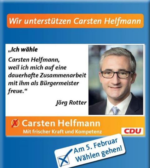 „Ich wähle Carsten Helfmann“ ist ein Signal an alle CDU-Anhänger, dem Kandidaten der CDU die Stimme zu geben und nicht dem Kandidaten der AL/Die Grünen.