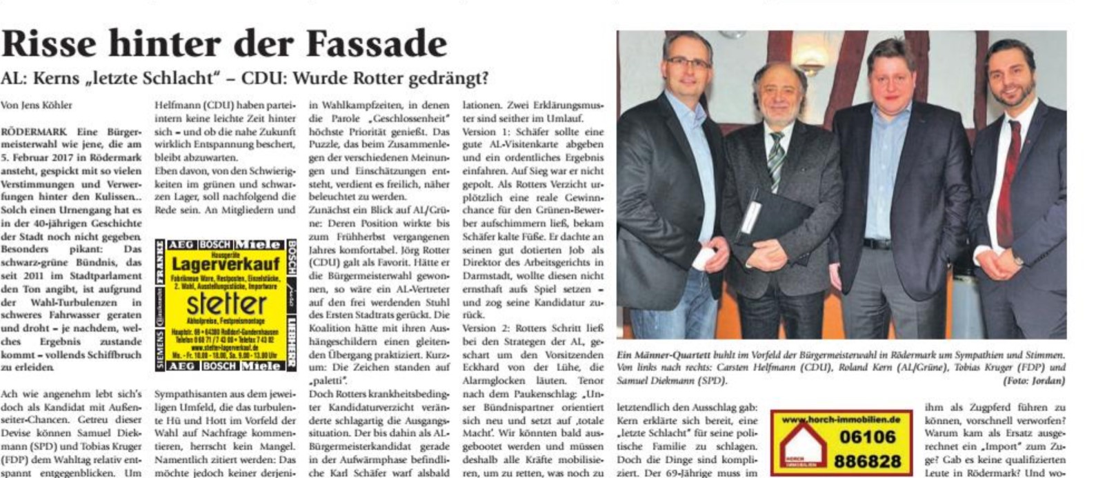 So weit, so gut. Als aufmerksamer Leser vom Blättche und der OP habe ich bis heute (11:00h) keine Bekenner-Anzeige „Ich wähle Roland Kern“ von Karl Schäfer gesehen. Wenn ich falsch liegen sollte, bitte ich um kurze Info.