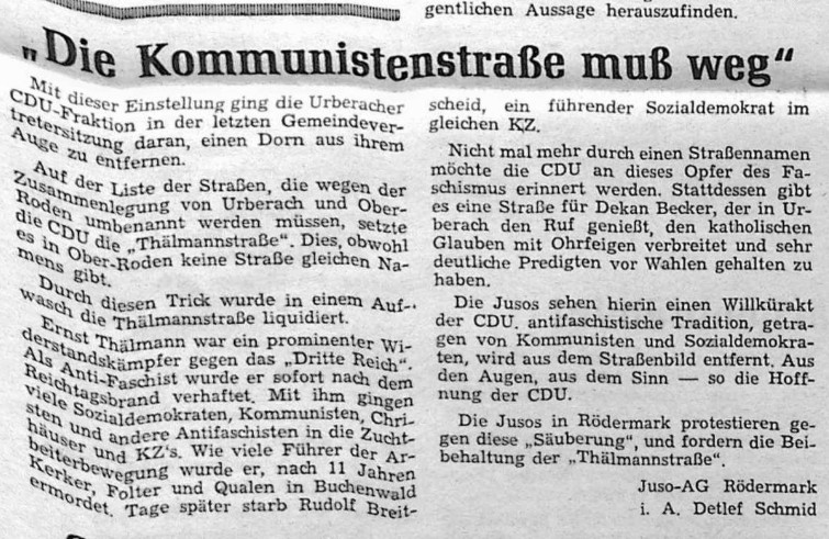» 02.06.2014 CDU lässt Straße nach KPD-Chef Thälmann benennen