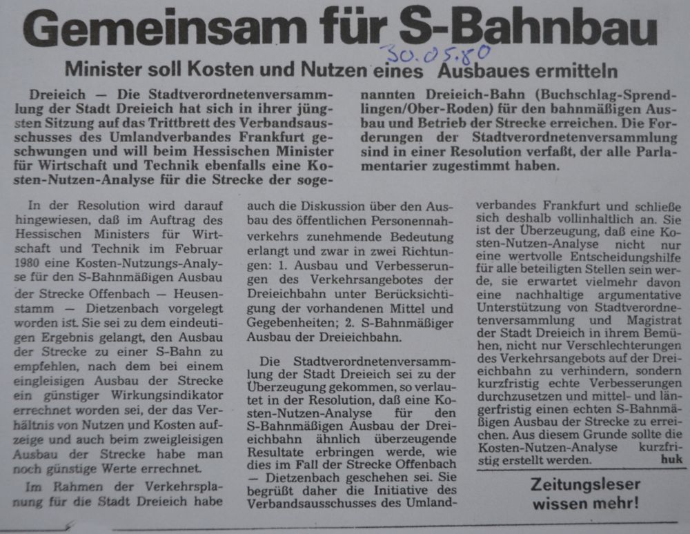 Gemeinsam für den S-Bahnbau. Ober Rodener Anzeigeblatt