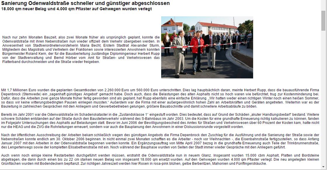 Sanierung der Odenwaldstraße schneller und günstiger abgeschlossen.