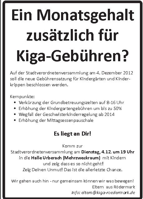 Die Rödermarker Haushalte müssen realistisch mit einer Kostensteigerung bei den Abgaben/Steuern an die Stadt Rödermark mit ca. 25,00 Euro pro Monat rechnen.