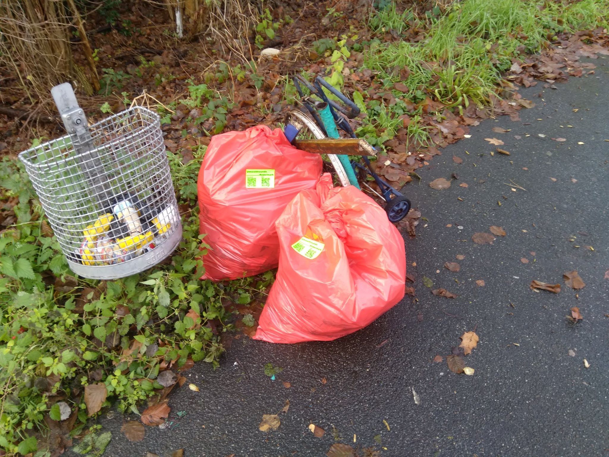 Neben einem alten Fahrrad und dem üblichen Müll wurden noch jede Menge Elektroschrott und zwei alte Gasflaschen gefunden.
