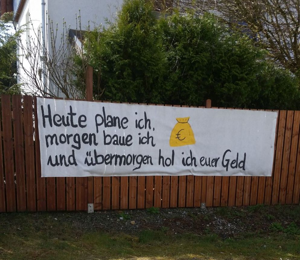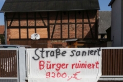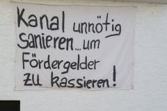 Es wurde kurz und knapp das bestätigt, was auf dem Plakat steht. „Kanal war nicht nötig. Es gab aber Fördergelder.“ Kommt mir bekannt vor. Man beantragT Fördergelder, bekommt den Zuschlag und dann geht es krampfhaft auf die Suche nach Projekten, wo man die Fördergelder verpulvern kann. Man muss wissen, Fördergelder belasten ganz gewaltig die Gemeindekasse. Bei z.B. 10.000.000,00 € Gesamtsumme können es leicht 3.000.000,00 € Gemeinde-/Stadtanteil werden.