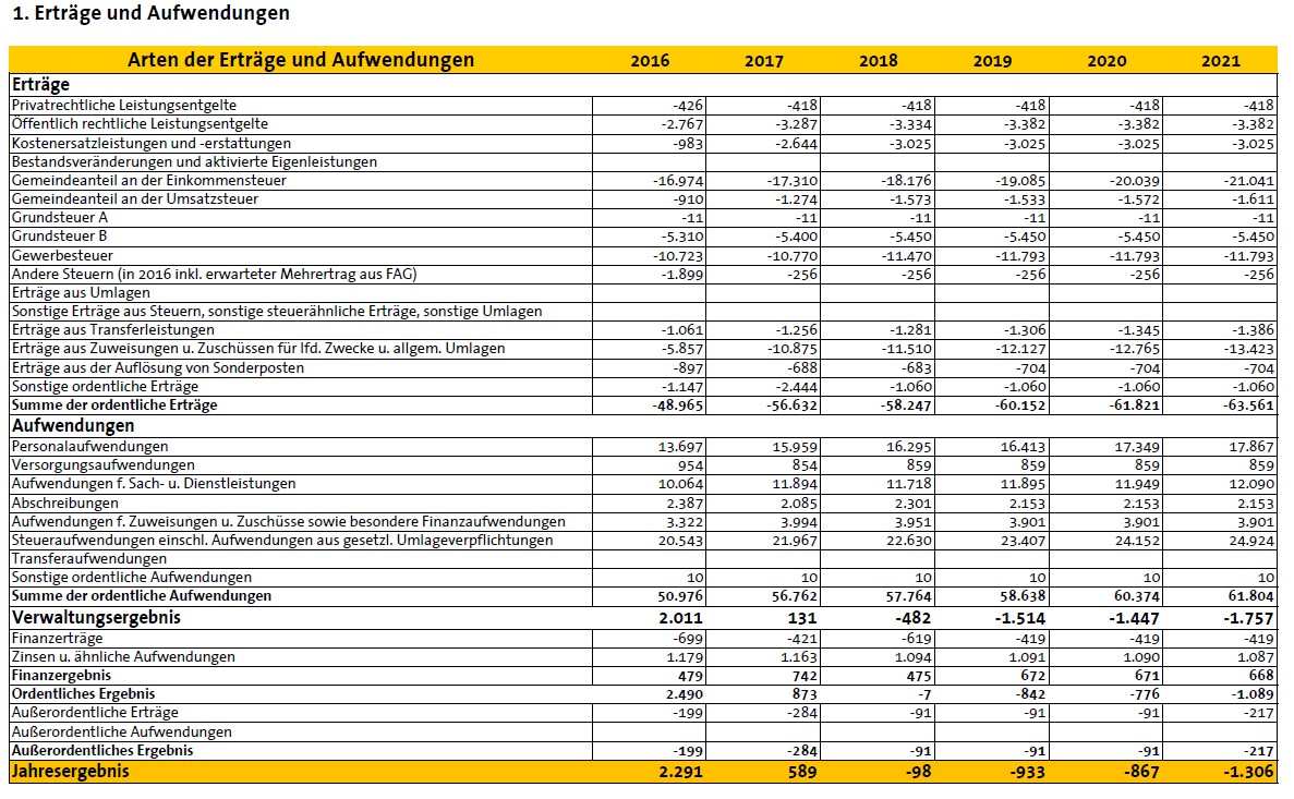 | Verwaltungsergebnis | 7.836 | 6.610 | 6.923 | 6.737 | 6.696 |