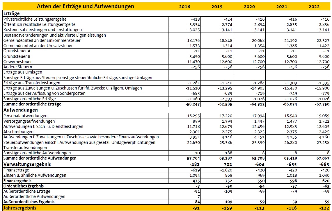 | Arten der Erträge und Aufwendungen | 2019 | 2020 | 2021 | 2022 | 2023 |