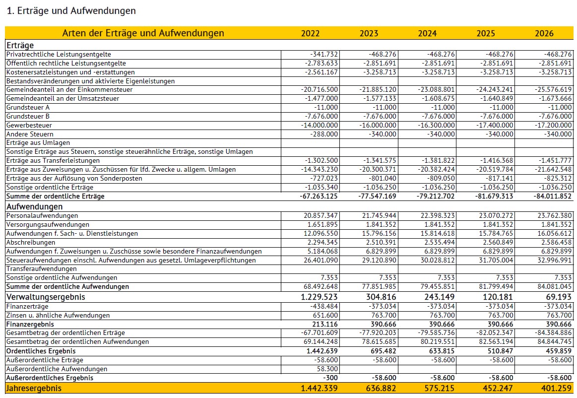 | Gemeindeanteil an der Einkommensteuer | -20.716.500 | -21.885.120 | -23.088.801 | -24.243.241 | -25.576.619 |