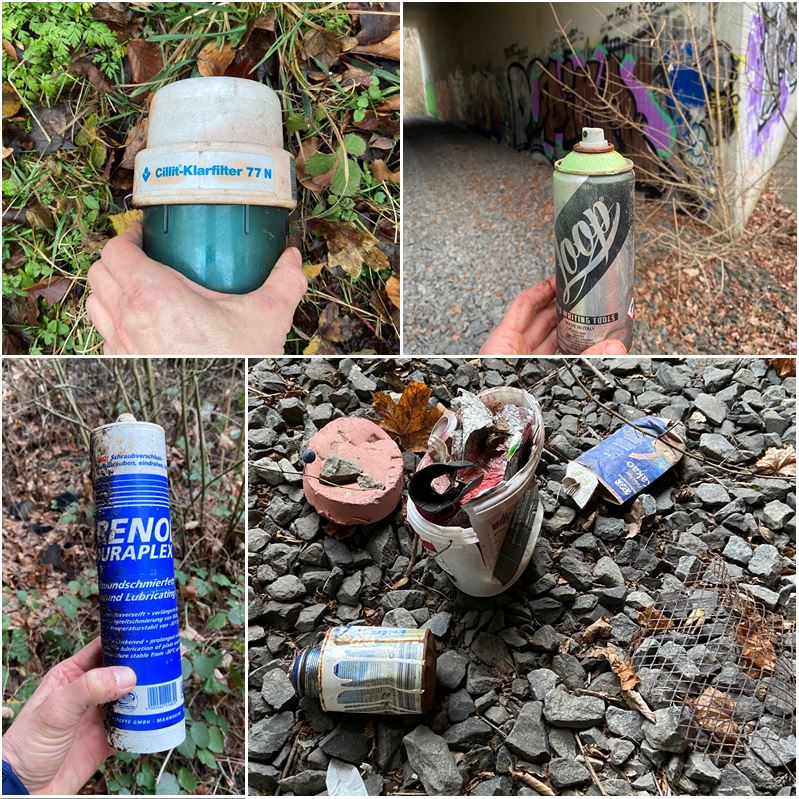 Der Müll wurde von von Frank Schemm, auch reglem. Teilnehmer bei den Sammelaktionen der Umweltfreunde Rödermark, eingesammelt.